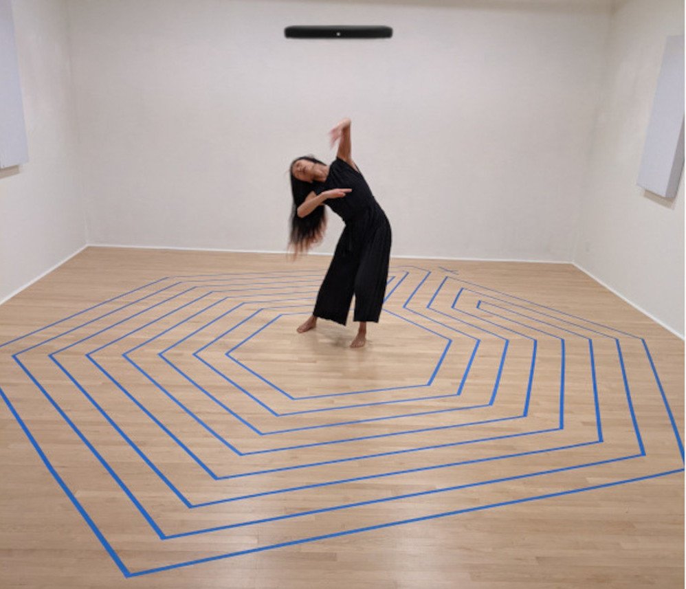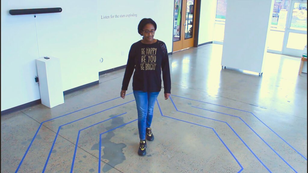 Design: The labyrinth is outlined on the floor, a speaker system and the sound work that was inspired by the sonics in Saturn’s rings will accompany the participants on their journey.